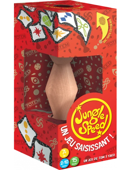 Jungle Speed évolue avec son temps et change de packaging. Ce nouveau design est pensé pour gagner en visibilité, grâce à une ligne plus aérée et légère. Il se démarque des versions précédentes par son aspect résolument écologique : moins de plastique, un totem en bois certifié FSC.