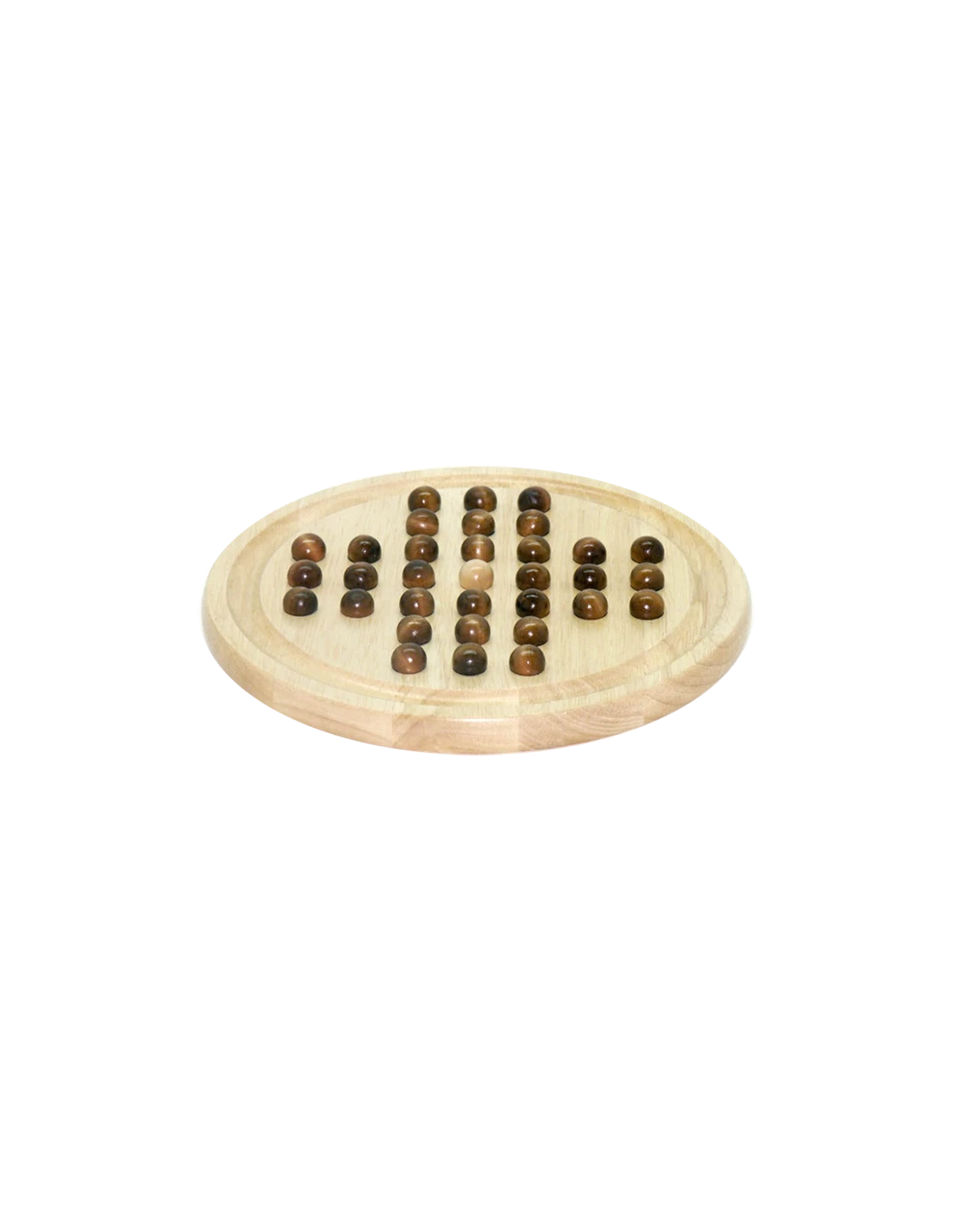 Un beau solitaire tout en bois naturel clair et ses billes foncées. Retrouvez ici le classique jeu du Solitaire dans sa version en bois naturel de 25 cm de diamètre.