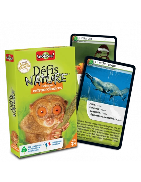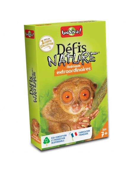 Le principe de Défis Nature – Animaux extraordinaires est simple : les enfants de 7 ans et + parient sur les points forts des animaux. Le joueur qui possède la plus forte caractéristique remporte les cartes des autres joueurs. Le premier à collecter toutes les cartes du jeu gagne la partie.
