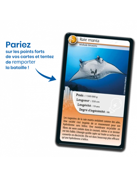 Découvrez les espèces à préserver, puis pariez sur les points forts de vos animaux pour collecter toutes les cartes du jeu et remporter la partie. Alors, prêts à relever le défi ?