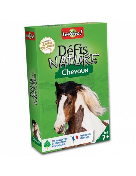 Le principe de Défis Nature – Chevaux est simple : les enfants de 7 ans et + parient sur les points forts des animaux. Le joueur qui possède la plus forte caractéristique remporte les cartes des autres joueurs. Le premier à collecter toutes les cartes du jeu gagne la partie.