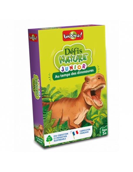 Partez à la rencontre des dinosaures avec Défis Nature Junior – Au temps des dinosaures ! Découvrez vos dinosaures, comparez leurs caractéristiques en vous aidant de la toise graduée et remportez un maximum de cartes !