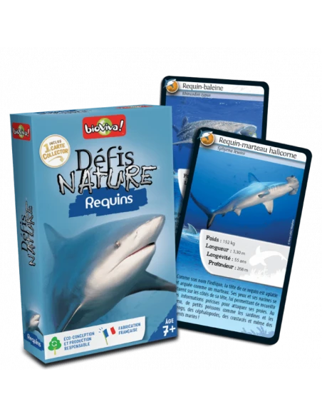 Le principe de Défis Nature – Requins est simple : les enfants de 7 ans et + parient sur les points forts des animaux. Le joueur qui possède la plus forte caractéristique remporte les cartes des autres joueurs. Le premier à collecter toutes les cartes du jeu gagne la partie.