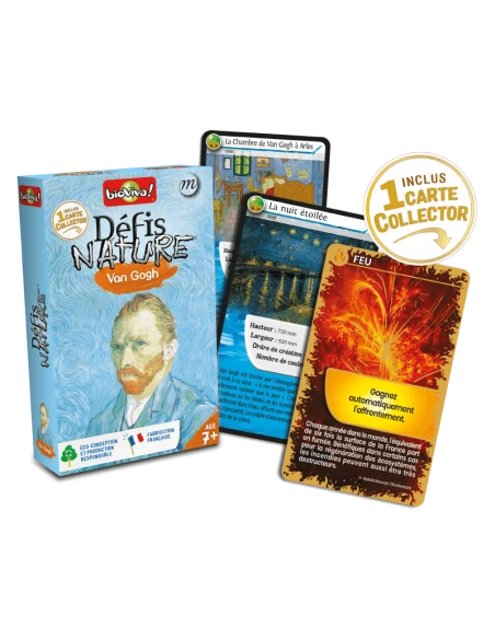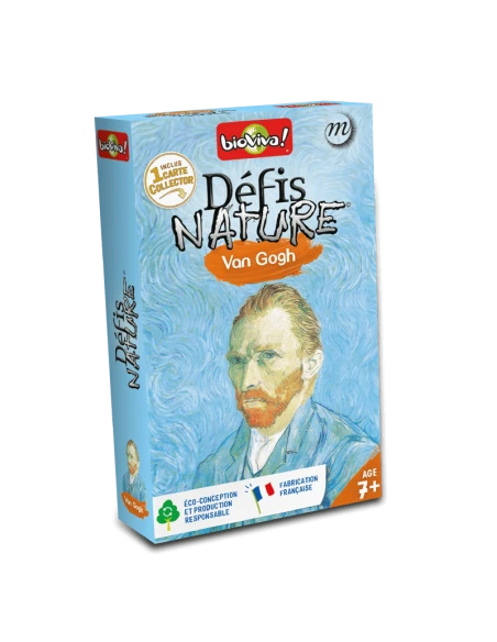 Avec Défis Nature – Van Gogh, les enfants découvrent les peintures emblématiques du maître néerlandais tout en jouant. Chaque carte présente une œuvre célèbre accompagnée de ses caractéristiques (dimensions, nombre de couleurs, ordre de création) et d’un contenu pédagogique pour enrichir ses connaissances artistiques.