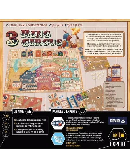 Chaque joueur doit équilibrer ses choix entre engagement d’artistes et organisation de représentations. Les cartes d’artistes offrent divers avantages, influençant l’ordre et l’impact des spectacles. À mesure que vous progressez, surveillez les déplacements du célèbre cirque Barnum, car sa présence dans une grande ville peut changer le cours de votre tournée. Avec des règles stratégiques et un plateau interactif, 3 Ring Circus garantit une expérience intense où la planification est la clé du succès.