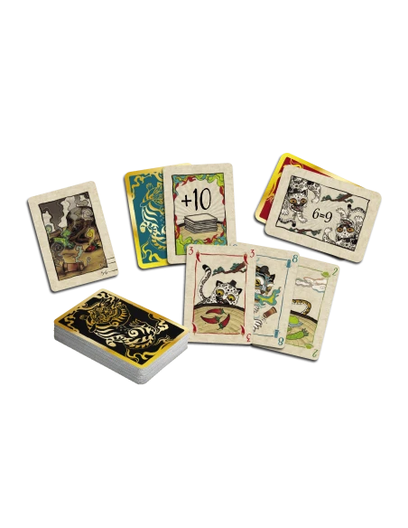 Spicy est un jeu de cartes taquin et dynamique pour 2 à 5 joueurs. Le but du jeu est de démontrer sa supériorité en dégustant des plats épicés, ou en faisant croire qu’on le fait ! Chaque joueur doit poser des cartes face cachée, en annonçant à voix haute le type d’épice (poivre, wasabi ou piment) et sa Puissance (de 1 à 10). Le bluff est de mise, car les joueurs peuvent mentir sur les cartes jouées. Le twist tactique réside dans l’action d’appeler le bluff de la dernière carte posée. Le joueur contestataire doit choisir si son adversaire a menti sur l’épice ou la puissance, avec une erreur sanctionnée par la pioche de cartes supplémentaires. Le joueur qui parvient à jouer la dernière carte de sa main remporte une carte trophée, qui rapporte 10 points de victoire et une victoire automatique si deux sont obtenues. La partie s’arrête lorsque les chats atteignent la carte Fin du monde, et le joueur avec le plus de points de victoire l’emporte.