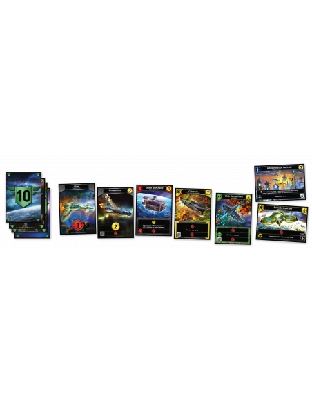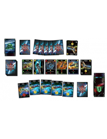 Contenu : 80 cartes Commerce,16 cartes Éclaireur, 10 cartes Prospecteur, 4 Cartes Viper, 12 cartes Influence 1/5, 6 cartes Influence 10/20 et 1 livret de règles.