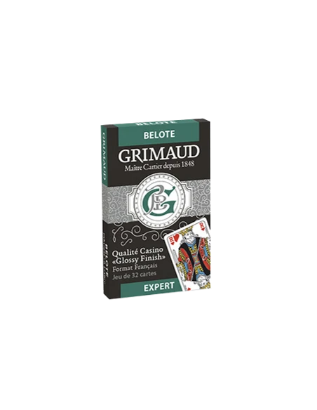 La gamme Expert répond à l’exigence des joueurs les plus expérimentés. Pour cela, les jeux de cartes bénéficient en plus du savoir faire ancestral, de cartons 330 g Glossy Finish. Jeux de 32 cartes avec un nouveau graphisme soigné tradition Grimaud, un toucher lisse, une glisse optimale, une opacité parfaite , des coins arrondis et des doubles figures. Portraits et format français spécialement conçus pour jouer à la belote dans le respect des traditions.