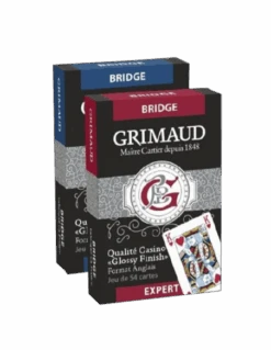 La gamme Expert est spécialement conçue pour les joueurs les plus aguerris, avec des jeux de cartes de qualité supérieure. Les cartes sont fabriquées avec du carton de 330 g Glossy Finish, disposent d’un nouveau graphisme traditionnel GRIMAUD, de coins arrondis, d’une opacité parfaite, de doubles figures et d’un format anglais. Les jeux contiennent 54 cartes (52 cartes et 2 jokers) avec un toucher lisse et une glisse optimale.