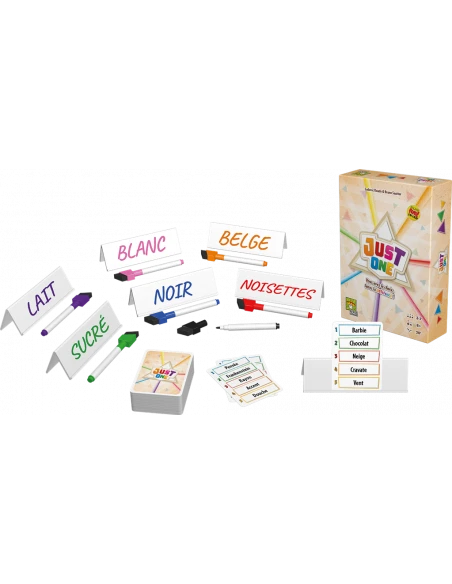 Just One est un jeu de société palpitant où un joueur tente de deviner un mot sur une carte donnée. Les autres joueurs doivent l’aider en écrivant un indice sur leur chevalet. Cependant, s’ils écrivent le même indice, ces indices sont effacés, ce qui rend la devinette plus difficile pour le joueur.