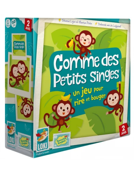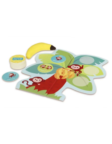 Contenu : 1 plateau Arbre, 40 cartes Singe, 1 Banane (balle à grains), 1 guide « Petits et Grands » et 1 Règle du jeu.