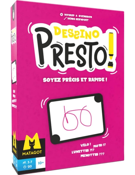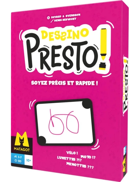 Dans le jeu de société « Dessino Presto », les joueurs s’affrontent dans une compétition de dessin effrénée. Le défi est de dessiner le même mot au même moment, mais la vitesse peut prendre le pas sur l’habileté. Gagnez en étant le gribouilleur le plus rapide, mais assurez-vous que les autres joueurs peuvent deviner correctement votre dessin pour marquer des points. Faites attention à ne pas transformer un taureau en fantôme ou en casque de viking ! Avec une sélection soigneusement choisie de mots sur les cartes, le jeu offre un niveau de complexité parfait pour stimuler la créativité et l’approche unique de chaque joueur.