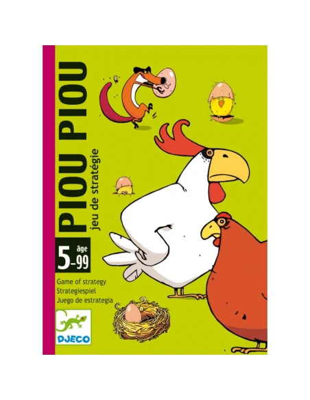 Piou Piou est un jeu de stratégie et de combinaisons où les joueurs doivent protéger leurs œufs de la menace d’un renard sournois. Le but est simple : faire éclore trois poussins pour remporter la partie, mais la tâche ne sera pas facile ! Pour pondre un œuf, chaque joueur doit réunir un coq, une poule et un nid. Ensuite, deux poules sont nécessaires pour couver l’œuf. Attention au renard ! Si un joueur tente de voler un œuf, il faudra l’intervention de deux coqs pour le repousser.
