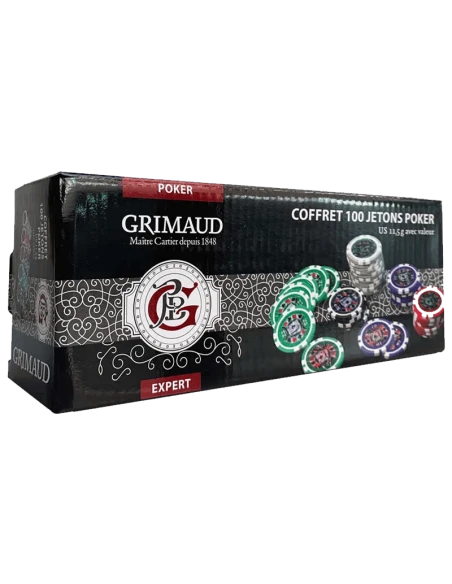Cette boîte de jeu de 100 jetons Grimaud Expert contient tout le nécessaire pour miser pendant vos parties de Poker.