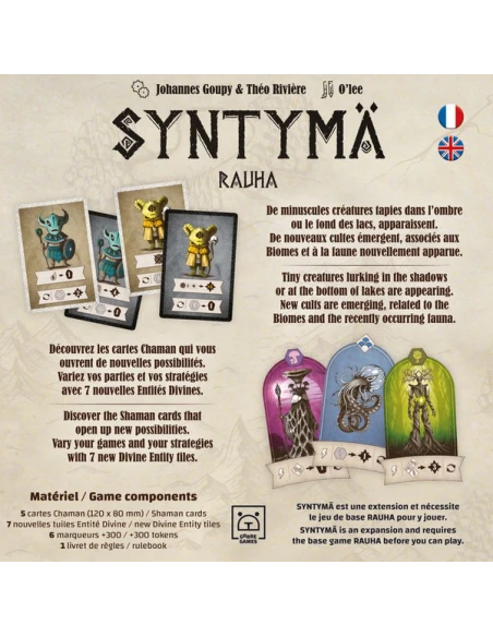 Rauha Extension Syntyma vous invite à repousser les limites de votre exploration dans le monde fascinant du jeu de base. Préparez-vous à des parties renouvelées, à des choix stratégiques approfondis et à l’émerveillement devant les possibilités infinies offertes par cette extension captivante !
