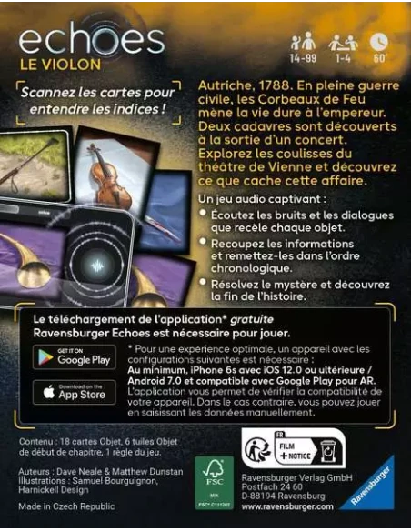 En 1788, l’Autriche est en proie à la guerre civile, et les Corbeaux de Feu s’opposent farouchement à l’empereur. Dans ce contexte troublé, deux cadavres sont découverts à la sortie d’un concert, déclenchant une enquête captivante. Dans Echoes : Le Violon, vous êtes invité à explorer les coulisses du célèbre théâtre de Vienne pour résoudre ce mystère troublant.