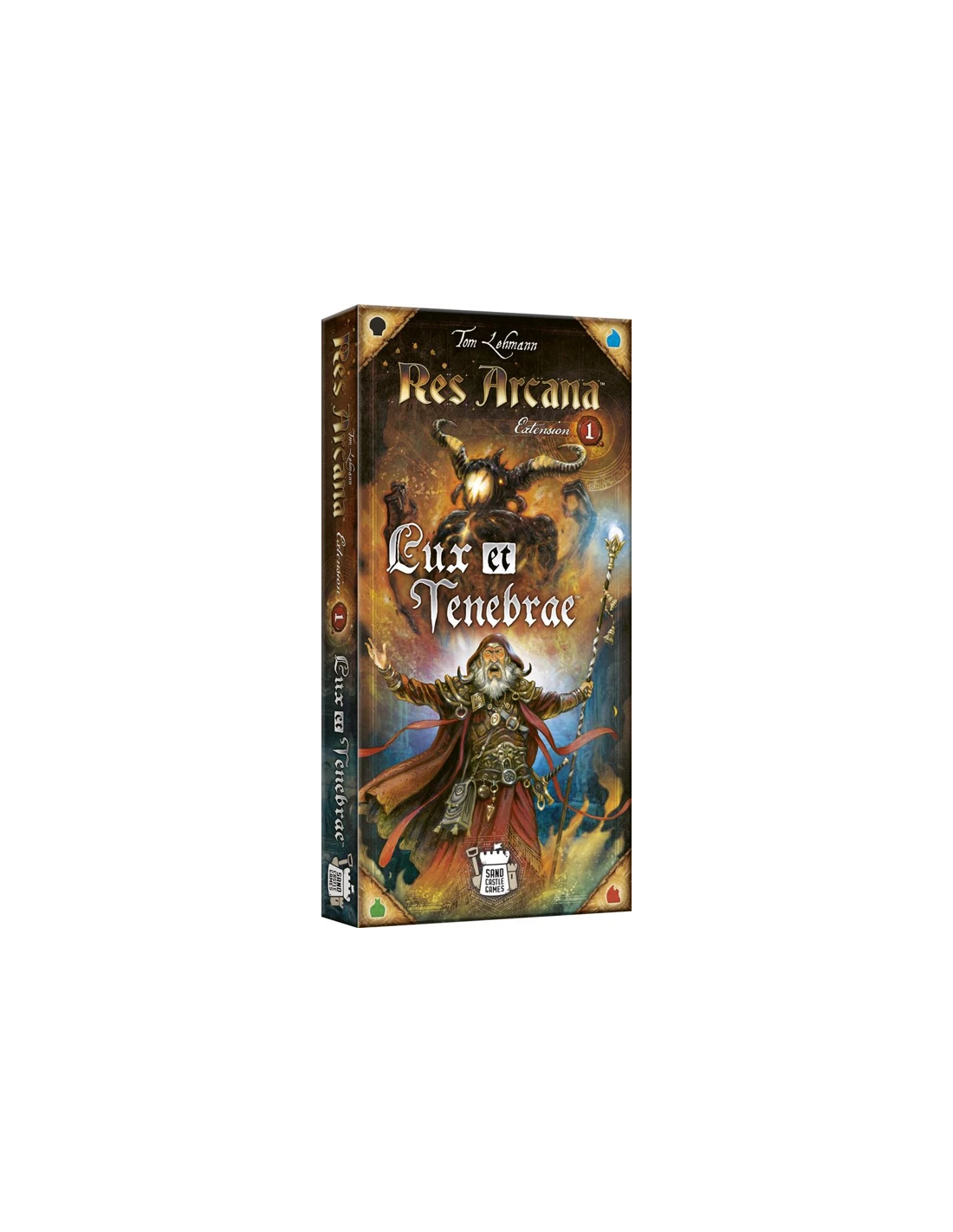 Lux et Tenebrae est une extension pour jouer jusqu’à 5 à Res Arcana, en plus d’ajouter de nouveaux mages, des objets magiques, des monuments, des lieux de pouvoir, des artefacts, dont les démons… En plus d’ajuster les règles pour le jeu à 4 et moins, pour davantage de rejouabilité !