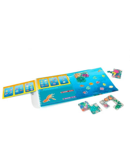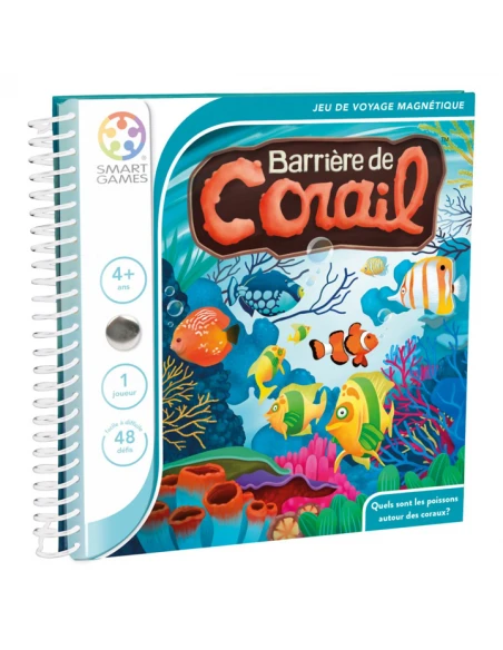 Découvrez « Barrière de Corail », un jeu de réflexion passionnant pour toute la famille. Le but du jeu est de placer les quatre tuiles aimantées « coraux » de manière à ne laisser visibles que les espèces marines indiquées dans le défi sélectionné. Avec 48 défis allant du plus simple au plus complexe, ce jeu offre un défi intellectuel captivant pour les joueurs de tous âges.