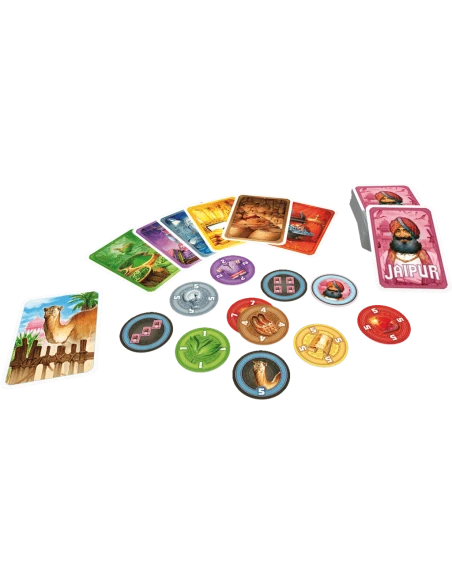 Devenez le marchand attitré du Maharaja dans ce jeu de cartes compétitif ! Dans ce jeu simple et rapide, travaillez bien et gagnez plus de roupies que votre adversaire en possédant le plus de chameaux à la fin de chaque manche. À la fin de chaque manche, le marchand le plus riche reçoit un Sceau d’Excellence. Le premier joueur qui en gagne deux remporte la partie et devient le marchand attitré du Maharaja ! Avec un contenu incluant 55 cartes, 38 jetons marchandises, 1 jeton chameau, 18 jetons bonus et 3 Sceaux d’Excellence, ce jeu est idéal pour les joueurs de tous niveaux.