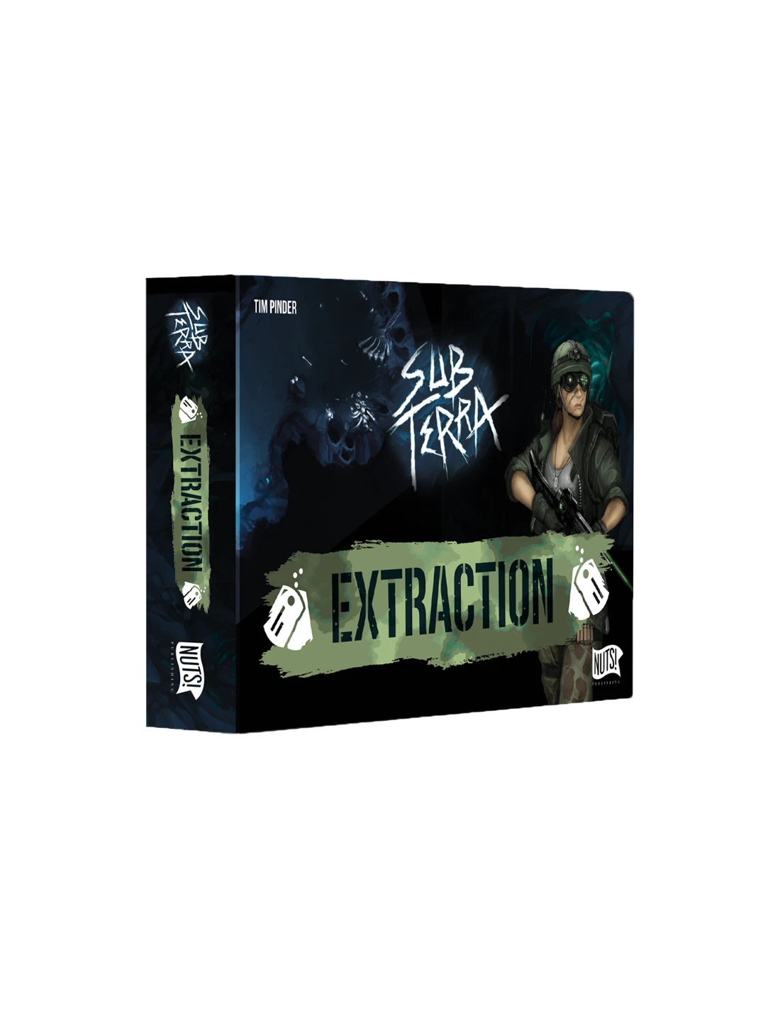 Sub Terra Extraction est une extension modulaire pour le jeu Sub Terra. Vous pouvez choisir de l’utiliser dans une partie de Sub Terra en appliquant les modifications d’installation suivantes. Cette extension se passe après les événements de Sub Terra. Vous êtes revenus dans la caverne et vous n’êtes pas seuls. Une nouvelle menace est sortie de l’ombre pour vous traquer, plus rapide et plus meurtrière.