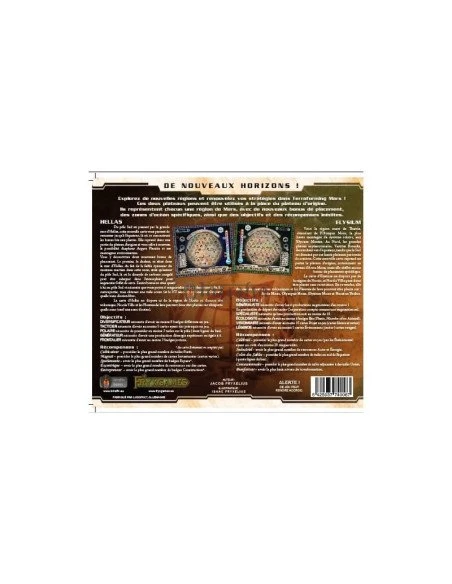 Terraforming Mars: Hellas & Elysium est la première extension tant attendue du grand succès de 2016, Terraforming Mars. Cette extension introduit un nouveau plateau avec deux côtés représentant deux nouveaux territoires fascinants sur Mars.