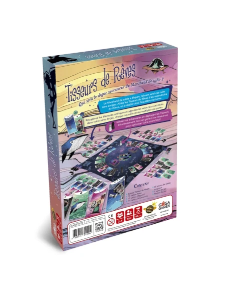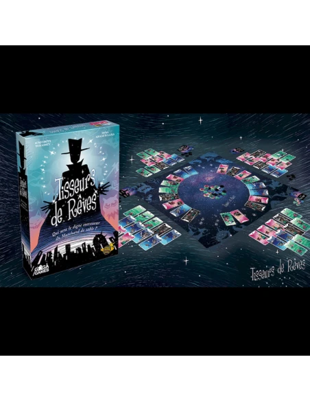 Dans Tisseur de Rêves, le Marchand de Sable a disparu, plongeant nos nuits dans le noir. Incarnez un Tisseur de Rêves et travaillez à la reconstruction de ces songes. Collectez des éléments oniriques et utilisez-les stratégiquement pour construire des strates de rêves dans votre zone de jeu, tout en entravant vos adversaires. Gérez vos ressources avec prudence pour obtenir le plus de points possibles et devenir le digne successeur du Marchand de Sable. Rétablissez l’équilibre nocturne dans ce jeu de stratégie et d’astuce pour toute la famille !