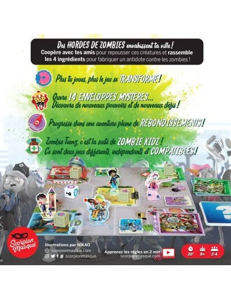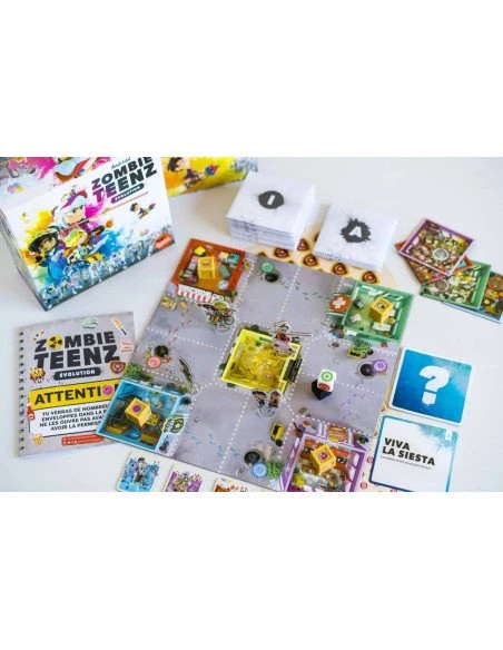 Ce jeu est évolutif et s’enrichit au fur et à mesure des parties et des exploits réalisés. Il offre une expérience unique et offre deux fois plus de contenu que le jeu original. Zombie Teenz Évolution est plus stratégique que Zombie Kidz et propose un contenu encore plus varié et surprenant.