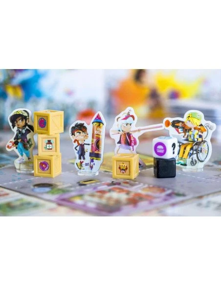Le contenu du jeu comprend un plateau de jeu, des pions Héros et Hordes de zombies, des tuiles de bâtiments envahis, des caisses d’ingrédients, des dés, des cartes Événement, des enveloppes d’évolution et d’accomplissement, des supports en plastique, un livret de règles et des autocollants.